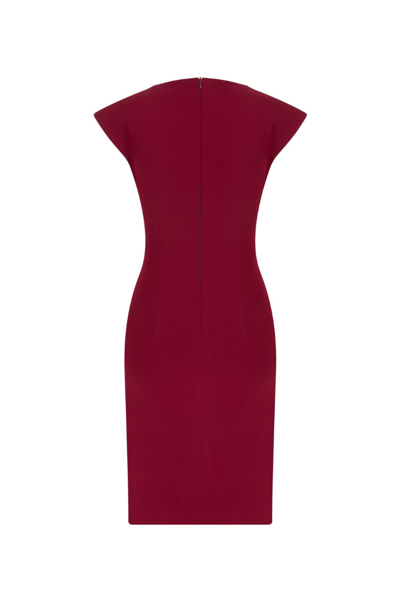 -Yukarı doğru kavislenen yapısal omuz detayı, elbiseye güçlü bir siluet kazandırır.