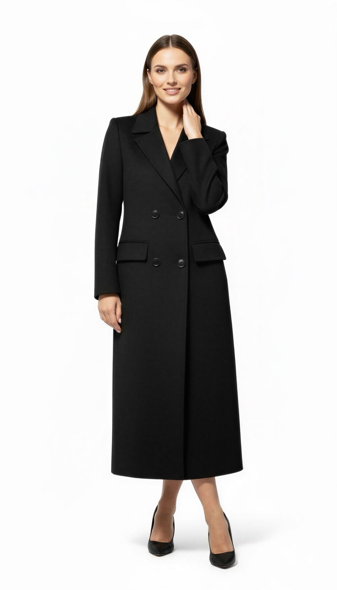 OBSIDIAN COAT’u kendi güçlü formuyla ön plana çıkaracak şekilde topuklu ayakkabılar veya düz botlarla tamamlayabilirsiniz. Kruvaze yapısı sayesinde tek parça şıklık sunar ve minimal aksesuarlarla dengeli bir görünüm elde edilir.