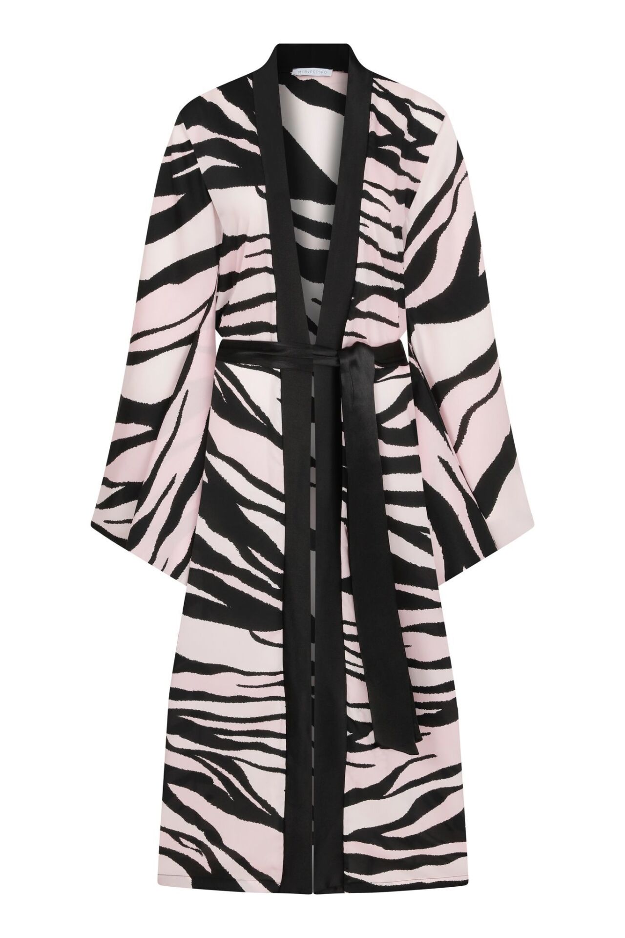 ZIVA KIMONO, pembe zemin üzerindeki siyah zebra deseni ve siyah biyeli hatlarıyla dinamik ama feminen bir duruş sergiliyor. Hafif yapılı kumaşı sayesinde gün boyu konfor sunarken, enerjik desenleriyle sahil şıklığının yıldız parçası olmaya aday. Plajdan şehir gezilerine uzanan çok yönlü kullanımıyla tatil bavulunun vazgeçilmezlerinden biri.